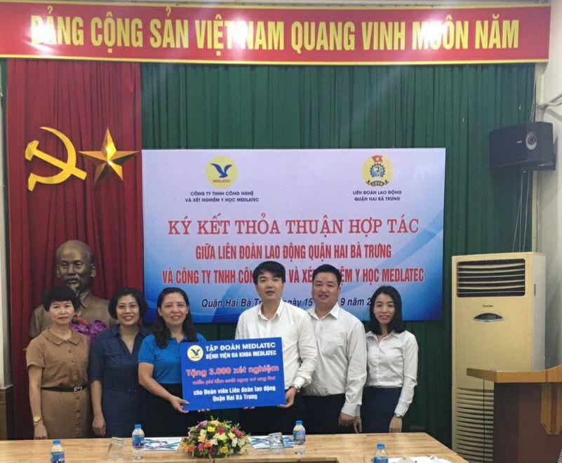 Sáng nay, ngày 15-09, MED GROUP đã ký kết thỏa thuận hợp tác thực hiện “Chương trình phúc lợi cho đoàn viên công đoàn” với Liên đoàn Lao động quận Hai Bà Trưng. Theo chương trình này, MEDLATEC tặng 3.000 xét nghiệm tầm soát ung thư cho Liên đoàn Lao động quận.