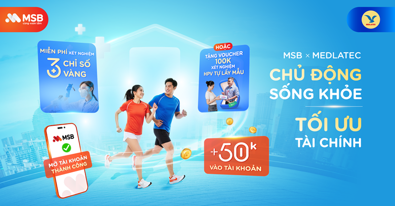 Đánh dấu sự hợp tác thành công tốt đẹp giữa Hệ thống Y tế MEDLATEC và Ngân hàng TMCP Hàng Hải Việt Nam (MSB), hai đơn vị đã phối hợp triển khai chương trình ưu đãi đặc biệt dành cho khách hàng. Theo đó, khi mở tài khoản tại MSB, khách hàng sẽ được nhận ngay 50K vào tài khoản và lựa chọn 1 trong 2...