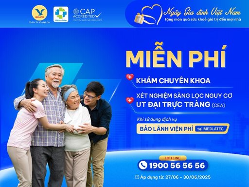 Nhân Ngày Gia đình Việt Nam (28/6), MEDLATEC triển khai chương trình ưu đãi dành riêng cho khách hàng sở hữu thẻ bảo hiểm sức khỏe của các công ty bảo hiểm. Chương trình ưu đãi gồm: miễn phí xét nghiệm sàng lọc nguy cơ ung thư đại trực tràng (CEA) và miễn phí khám với bác sĩ các chuyên khoa.