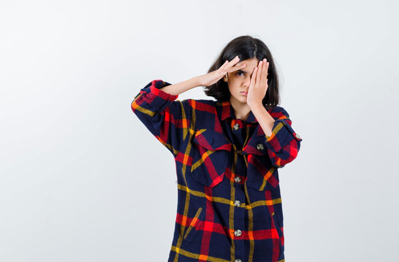 Khi trẻ nhỏ mắc bệnh, các em phải ngồi sát vào tivi, ngồi gần bảng hoặc để quyển sách gần mắt mới nhìn thấy được. Không những vậy, trẻ rất hay dụi mắt, chớp mắt, đặc biệt là cảm thấy đau nhức đầu, nguyên nhân là do mắt phải hoạt động liên tục gây mỏi.